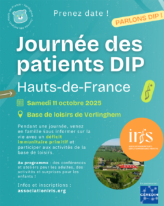 IRIS, en partenariat avec le CEREDIH du CHU de Lille, vous convie en famille à participer à la Journée des Patients des Hauts-de-France, qui se tiendra le samedi 11 octobre de 9h30 à 17h à la Base de Loisirs du Fort de Verlinghem (70 rue de Pérenchies 59237 VERLINGHEM).